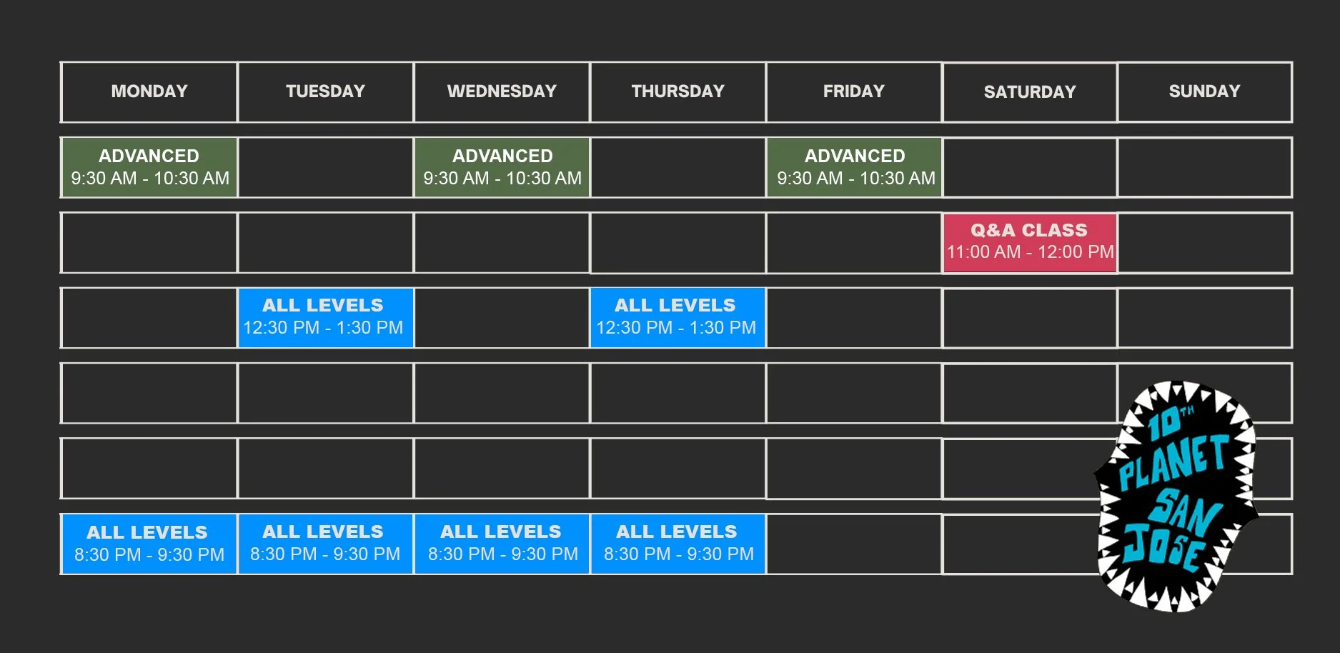 Q&A class is designed to let members help guide their own progression. Coach will help answer questions in the first half of class, and the second half is workshop drilling with Coach available to answer any questions you may have along the way.